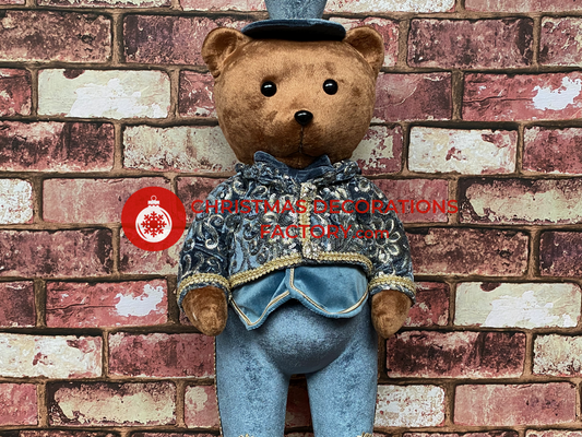 60cm Blue And Champagne Fabric Standing Boy Bear