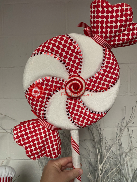 56cm Red And White Fabric Candy Swirls Spray