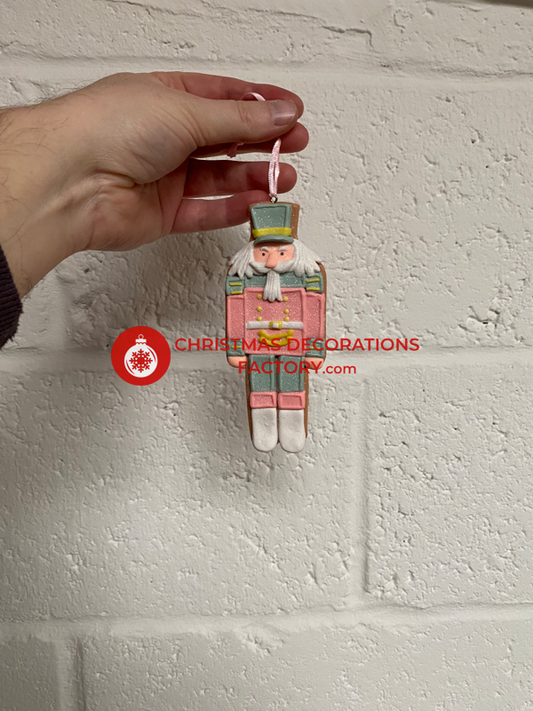 14cm Pastel Pink Christmas Nutcracker Clay Bauble