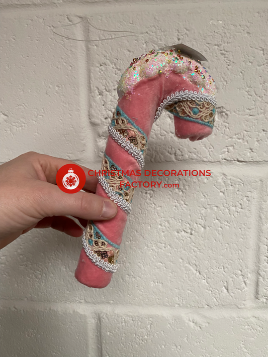 16cm Pink Fabric Candy Cane Lolly Decoration